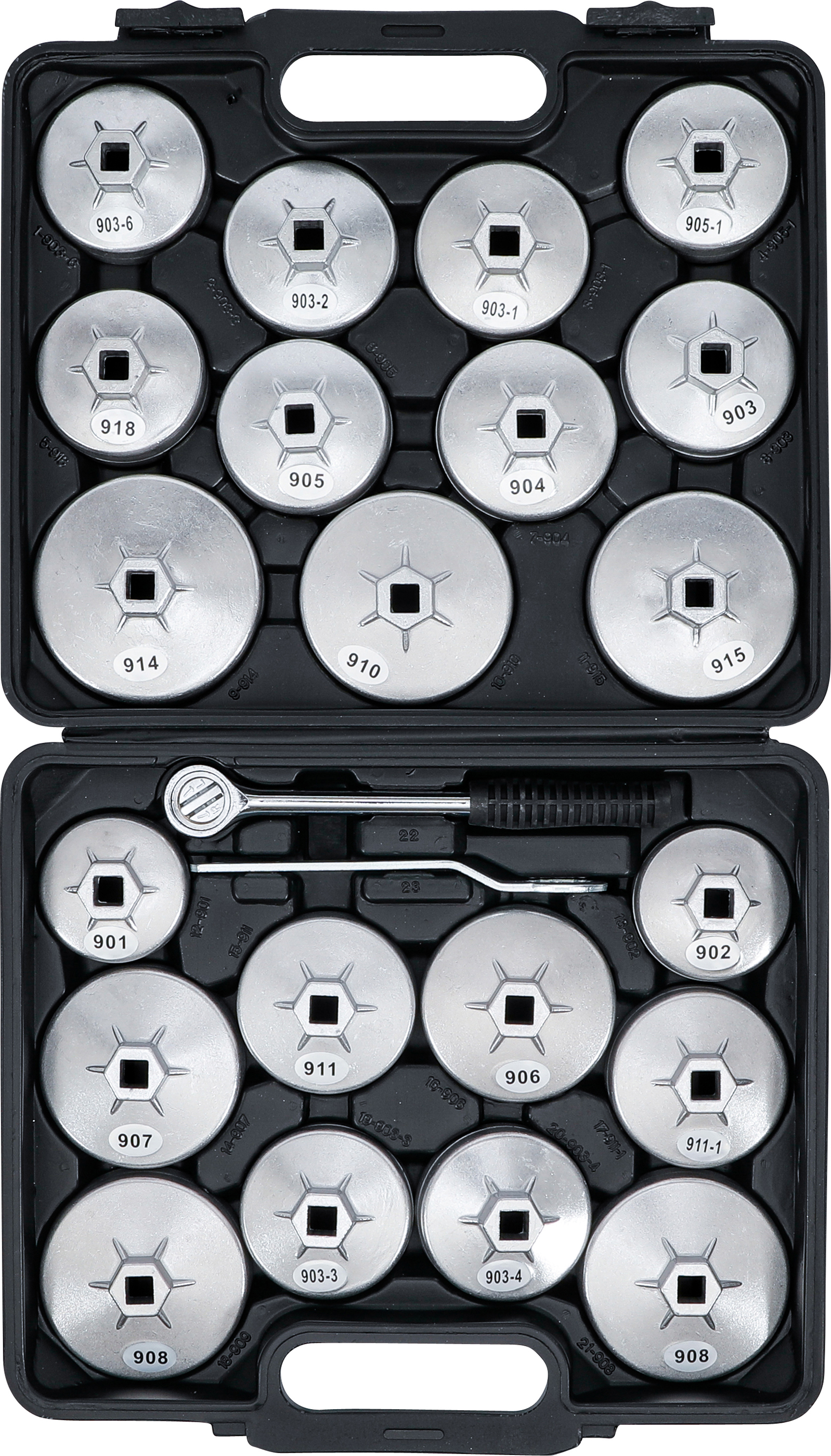 Produktinformationen "Ölfilterschlüssel-Satz 23-tlg. Aluminium-Druckguss mit Innenvierkant 12,5 mm (1/2")"