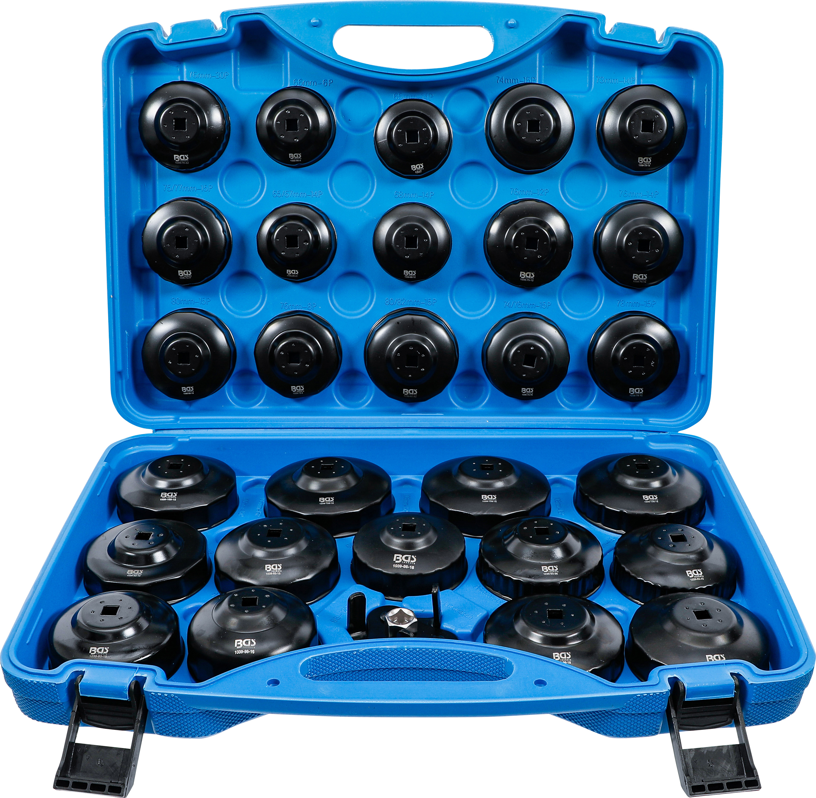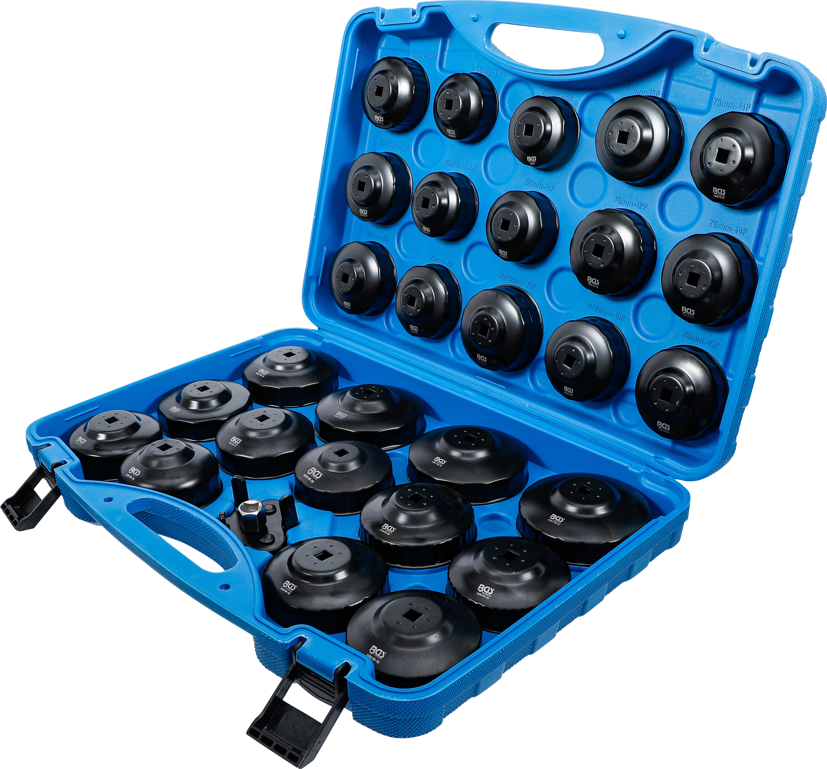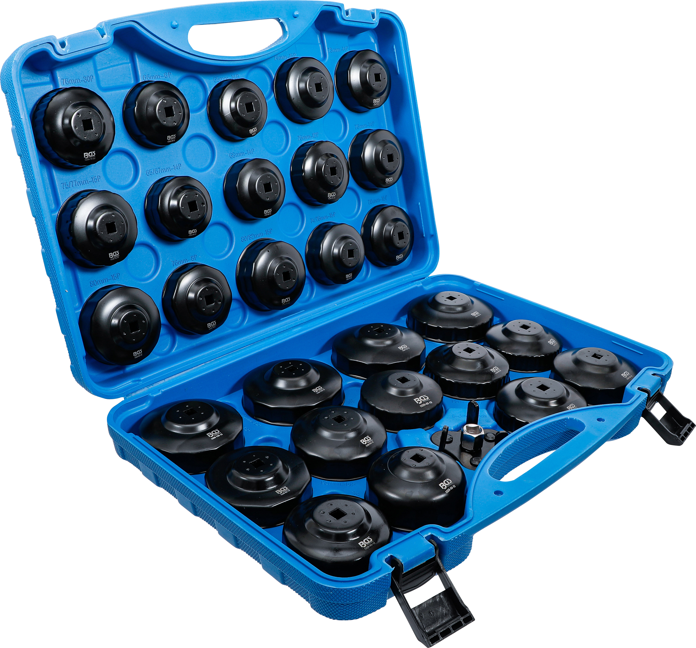 Der BGS Ölfilterschlüssel-Satz 30-tlg. bietet Ihnen eine umfassende Lösung zum professionellen Wechsel von Ölfiltern bei einer Vielzahl von Fahrzeugmarken. Mit robusten, schwarz lackierten Blechkappen und präzisen Passformen ist dieses Set sowohl für den täglichen Werkstattgebrauch als auch für ambitionierte Hobbyschrauber bestens geeignet. Durch den großen Größenbereich und die unterschiedlichen Kantprofile können Sie nahezu jeden gängigen Ölfilter sicher und beschädigungsfrei entfernen oder anziehen.