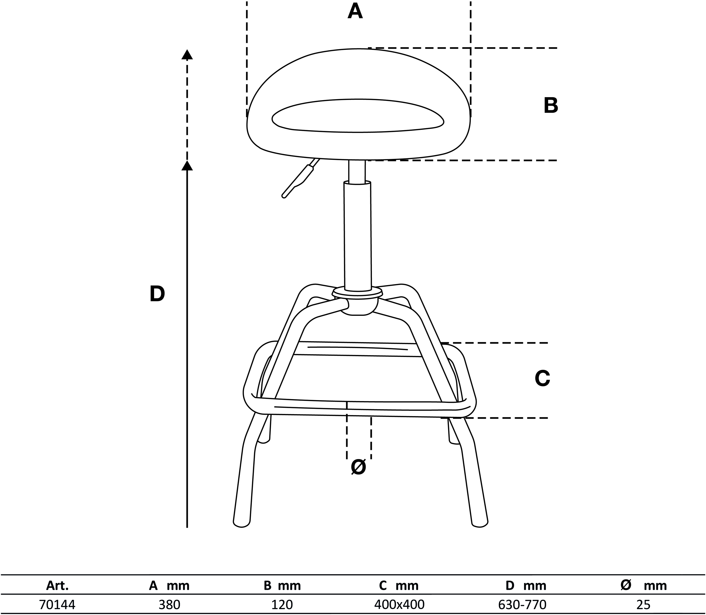| Sitzhöhe: | 630 - 770 mm |