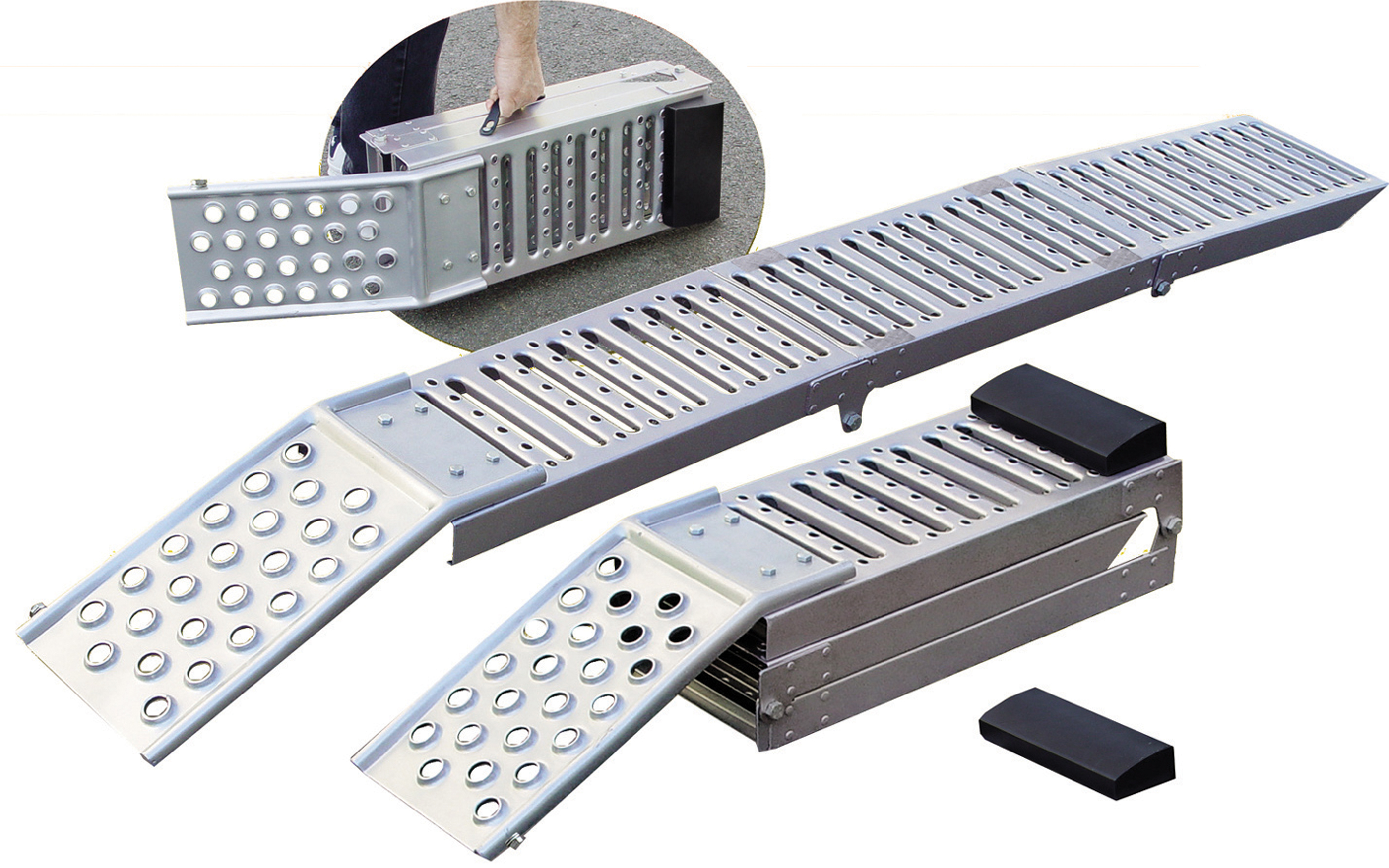 - Hohe Belastbarkeit bis 800 kg pro Rampe (zusammengeklappt)