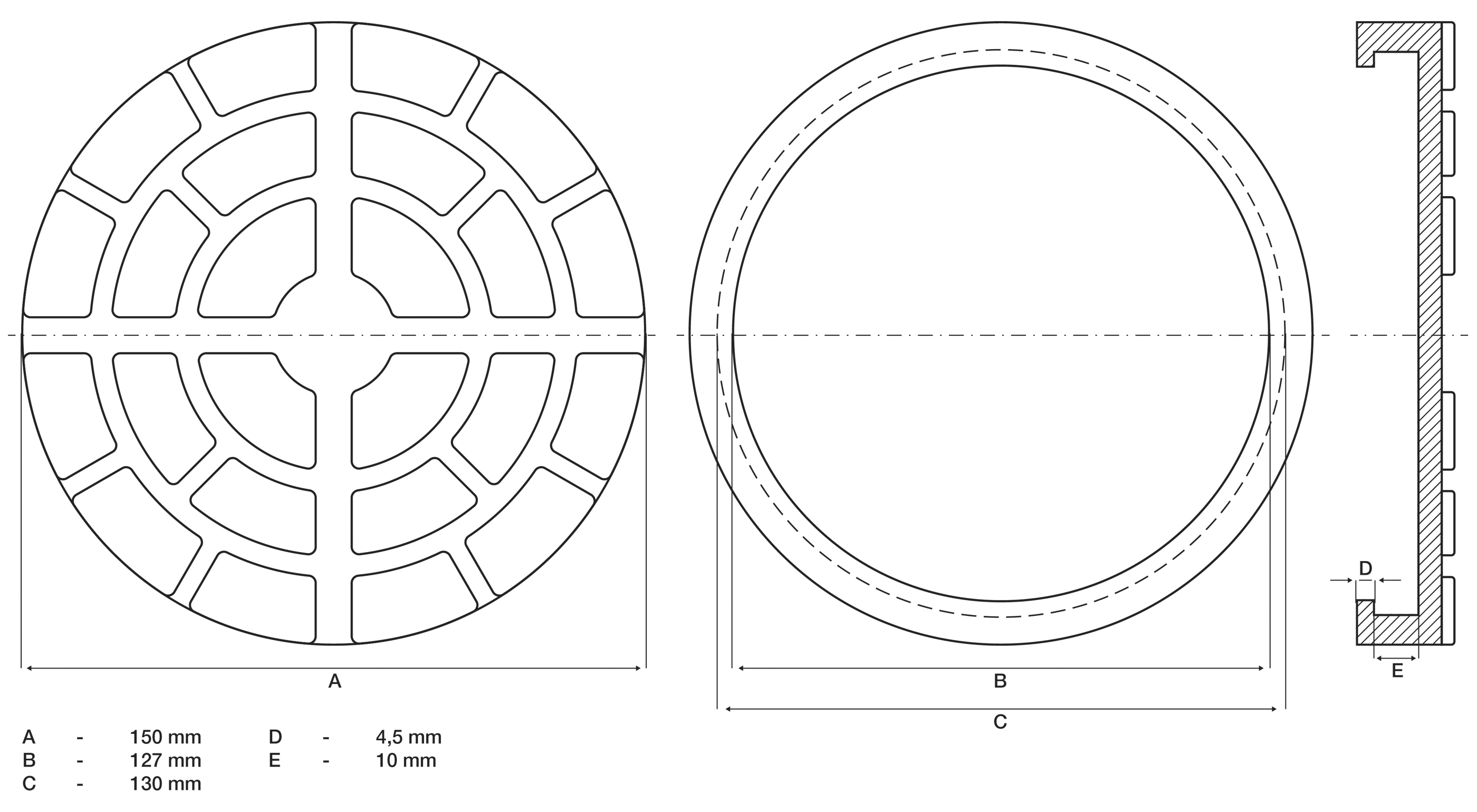 - 1x Gummiteller Ø150 mm, Innendurchmesser 130 mm, Höhe 23 mm