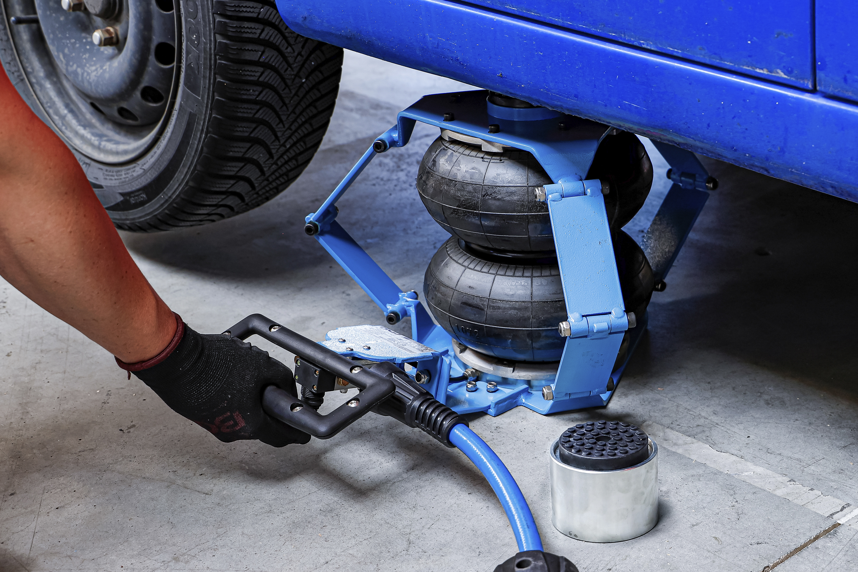 Dieser hochwertige pneumatische Ballon-Wagenheber ist die ideale Unterstützung für professionelle Werkstätten, Reifenservicebetriebe und Pannenhilfeunternehmen. Das durch Druckluftbetrieb unterstützte System ermöglicht ein schnelles, müheloses und sicheres Anheben von Fahrzeugen. Mit seiner Hubkraft von bis zu 2000 kg eignet sich der Wagenheber perfekt für PKW, Transporter und leichte Nutzfahrzeuge. Durch die Ausführung mit zwei robusten Hubballons aus mehrlagigem, hochresistentem Material bietet dieser Wagenheber eine besonders stabile und langlebige Konstruktion.