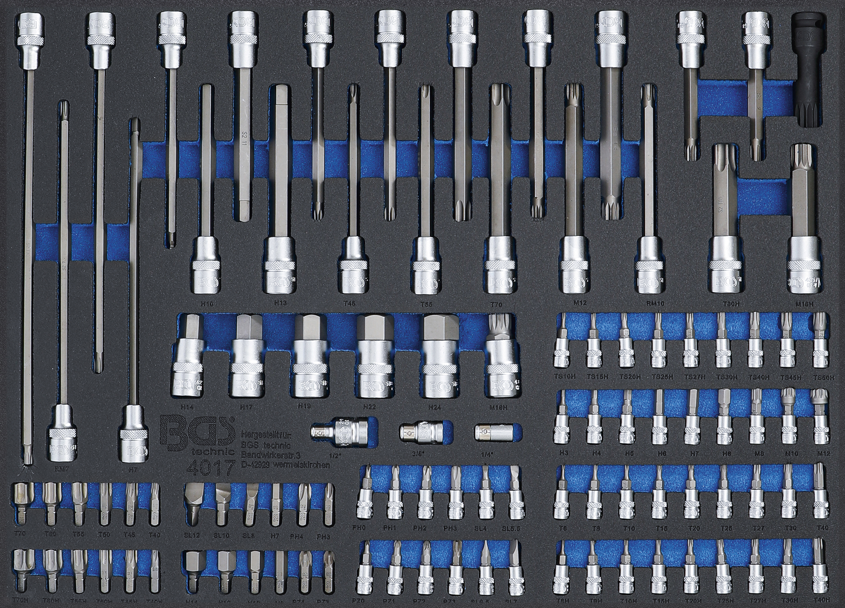 - Bit-Einsätze (Innenvierkant 6,3 mm & 12,5 mm) in diversen Längen und Profilen